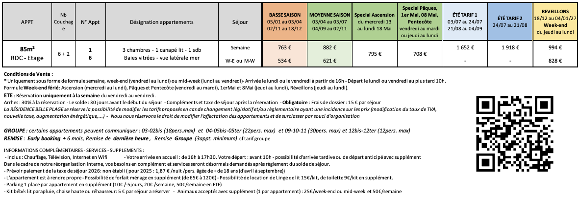 Nos tarifs dépendent de la saison, consultez nos grilles tarifaires ICI pour en savoir plus.